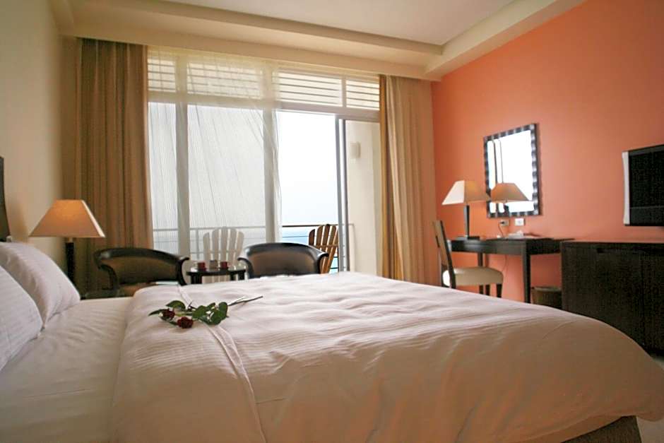 This spacious suite has a bathtub for 2 and a private balcony offering views of the ocean. The room is on the 5th floor.